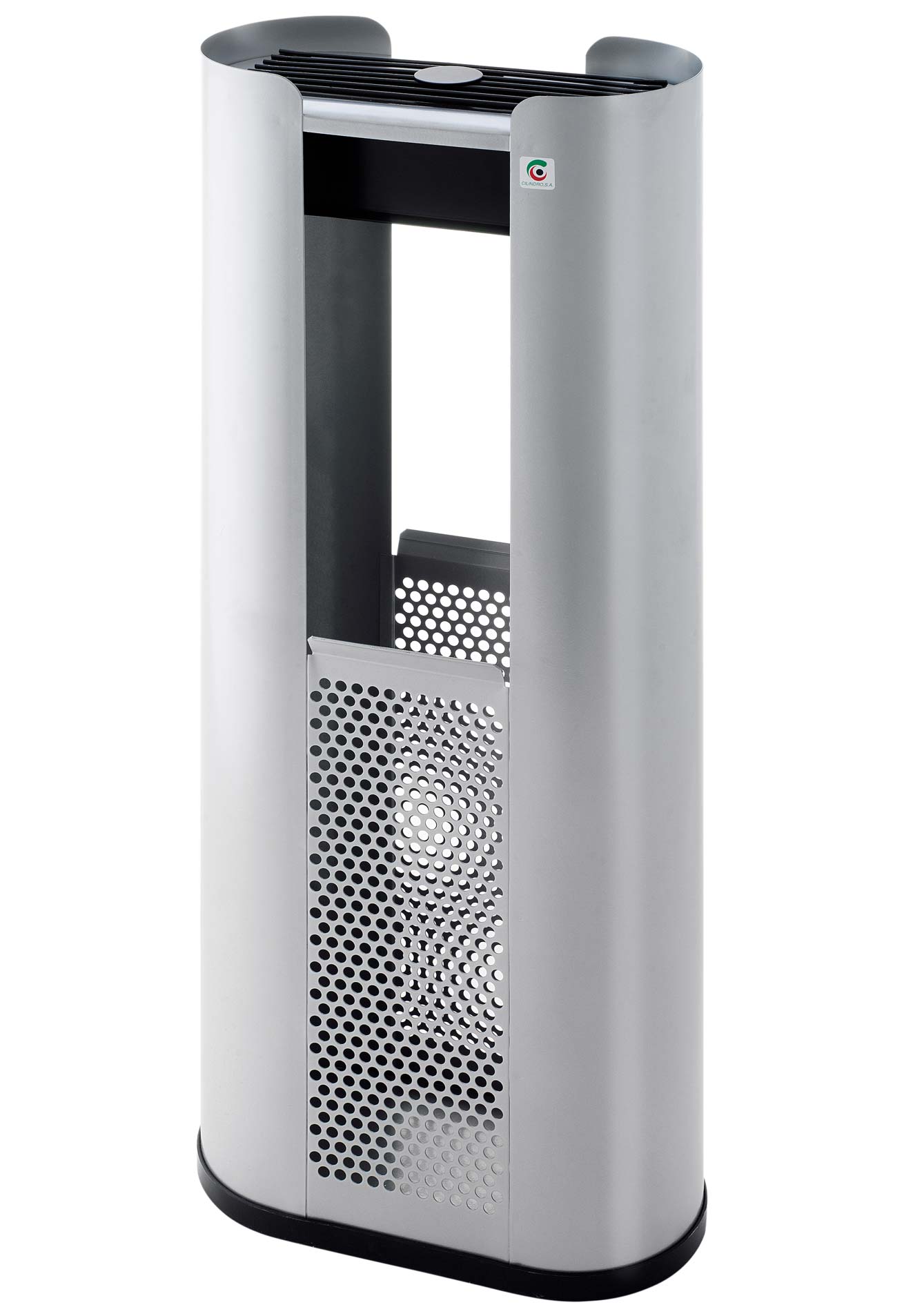Papelera-cenicero inoxidable B-11 Recogecolillas pintado en negro. Tapa metálica cromada. Embellecedores negros en abertura y base. Capacidad: 22 l.