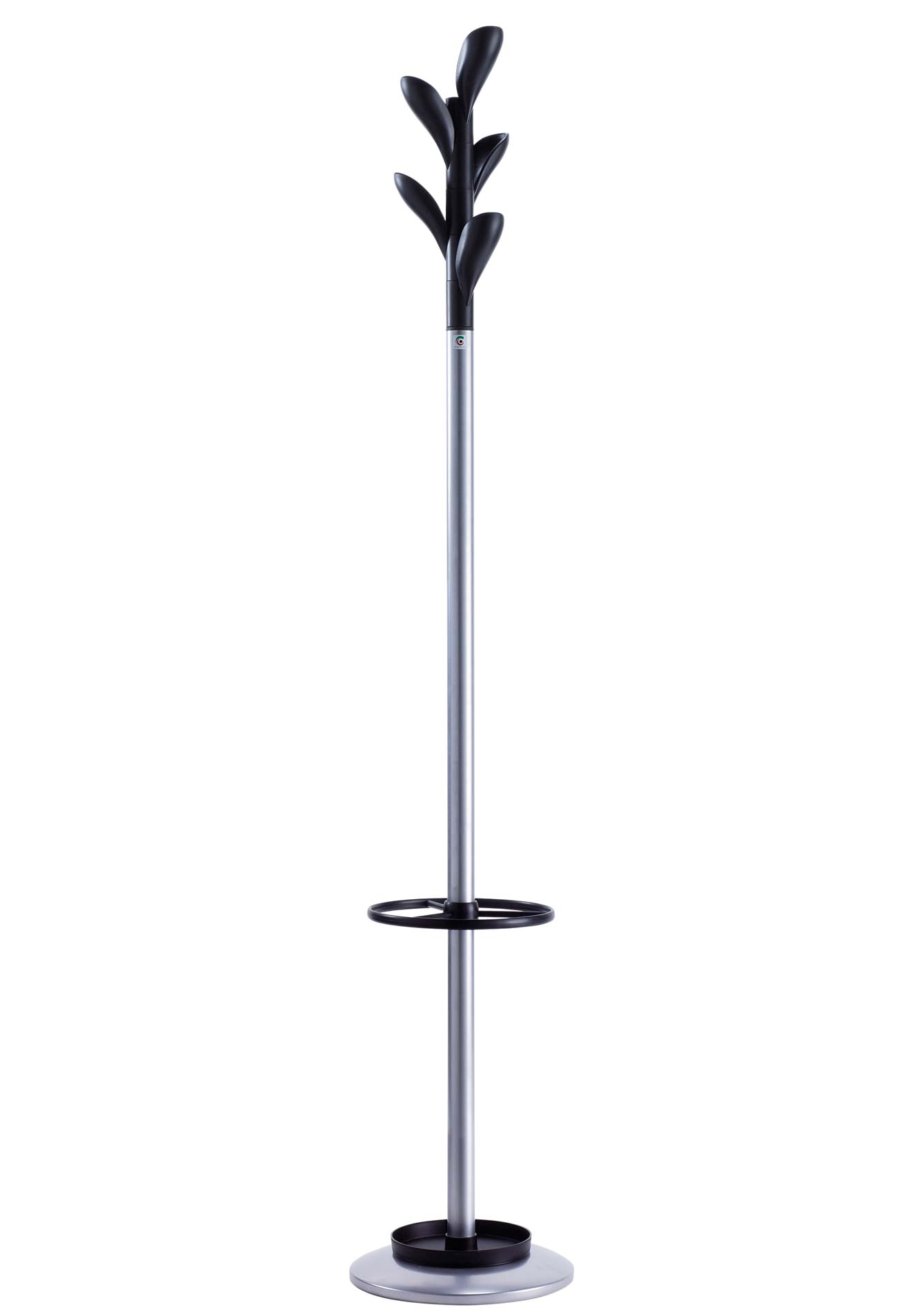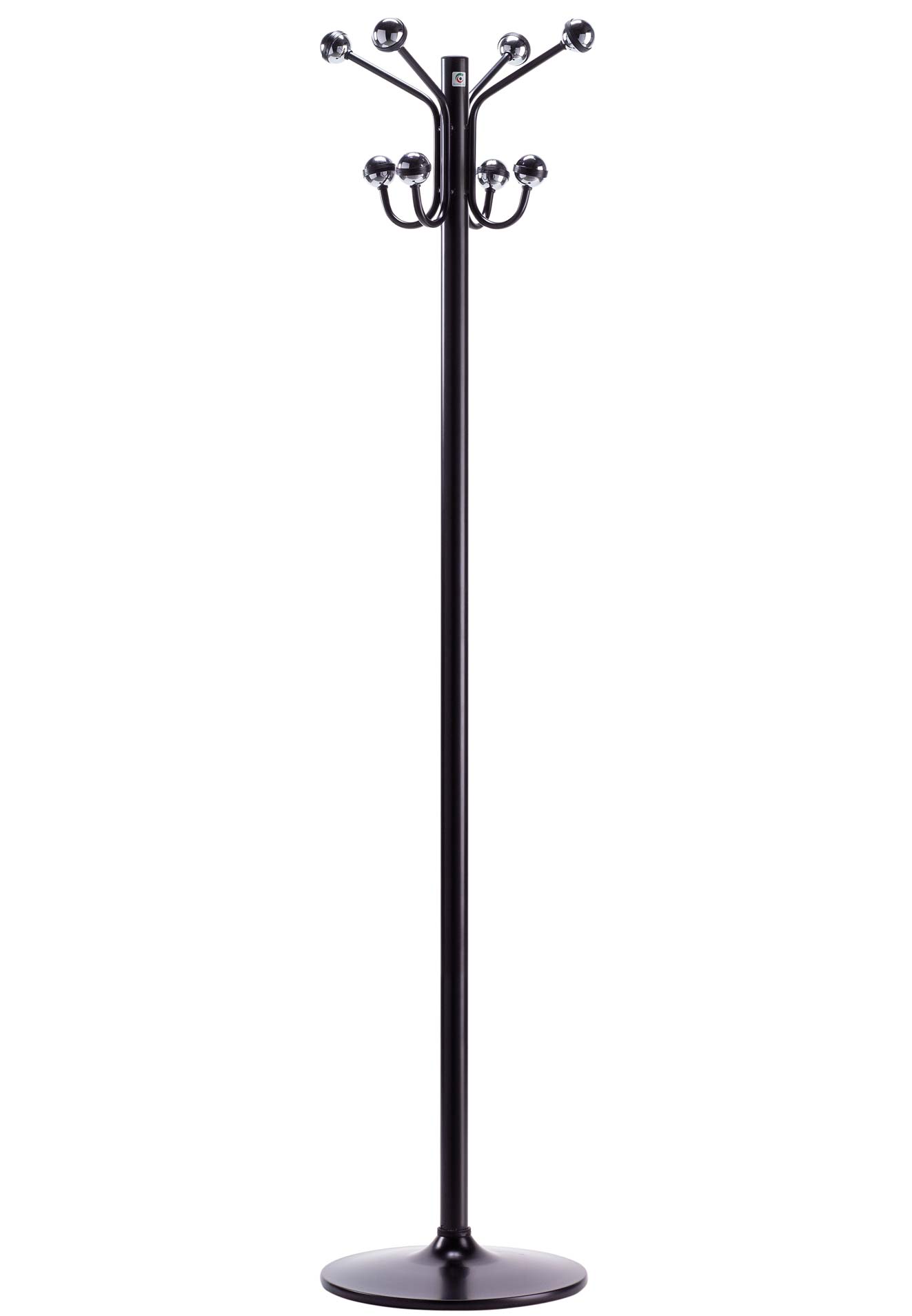 Perchero metálico pintado desmontable H-22D. Cuatro colgadores orientables en ABS negro.