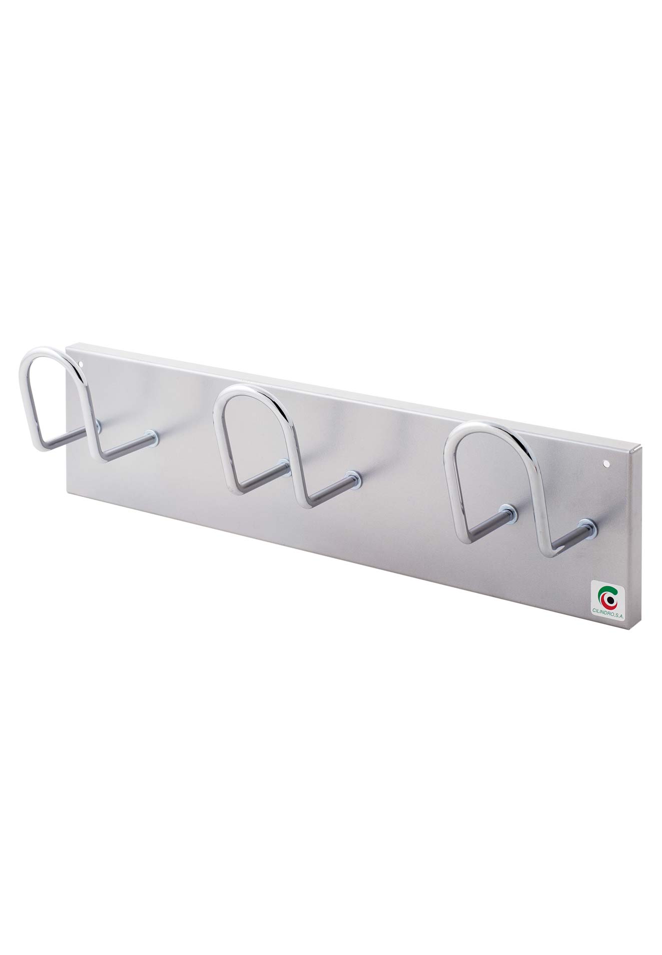Perchero metálico cromado H-23. Cuatro colgadores orientables en ABS negro.