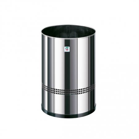 Papelera metálica perforada con dos asas. Embellecedor base en negro. Capacidad: 16 l. Colores: Negro, Ral 9006, Grafito, Blanco, Azul Texturado, Burdeos Texturado, Azul 5005, Amarillo 1021, Verde 6002, Rojo 3020, Beige, Marrón 8014