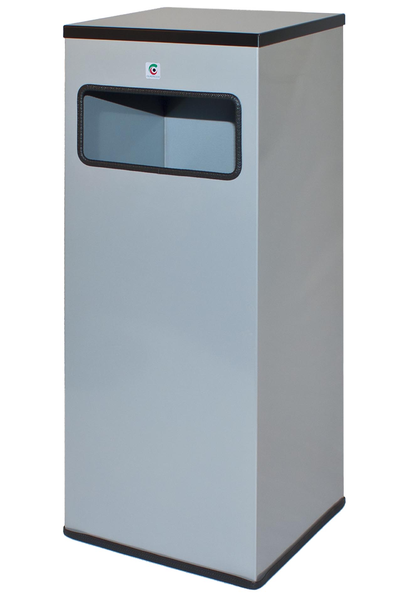Papelera inoxidable P-71 Remate superior desmontable para sujeción de bolsas. Embellecedor base en negro. Capacidad: 30 l. PESO NETO: 5,2 kg. MATERIAL DE FABRICACIÓN: - Acero Inoxidable AISI 430 brillo - Embellecedor inferior de polietileno.