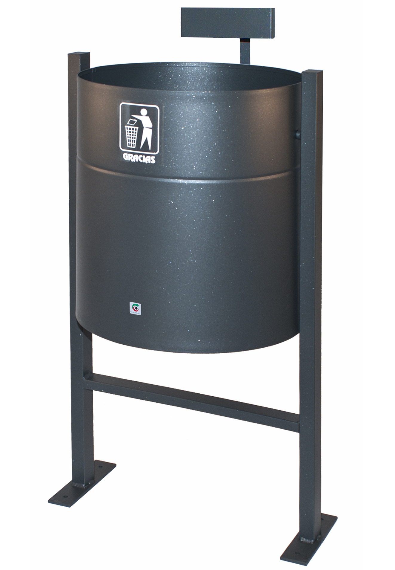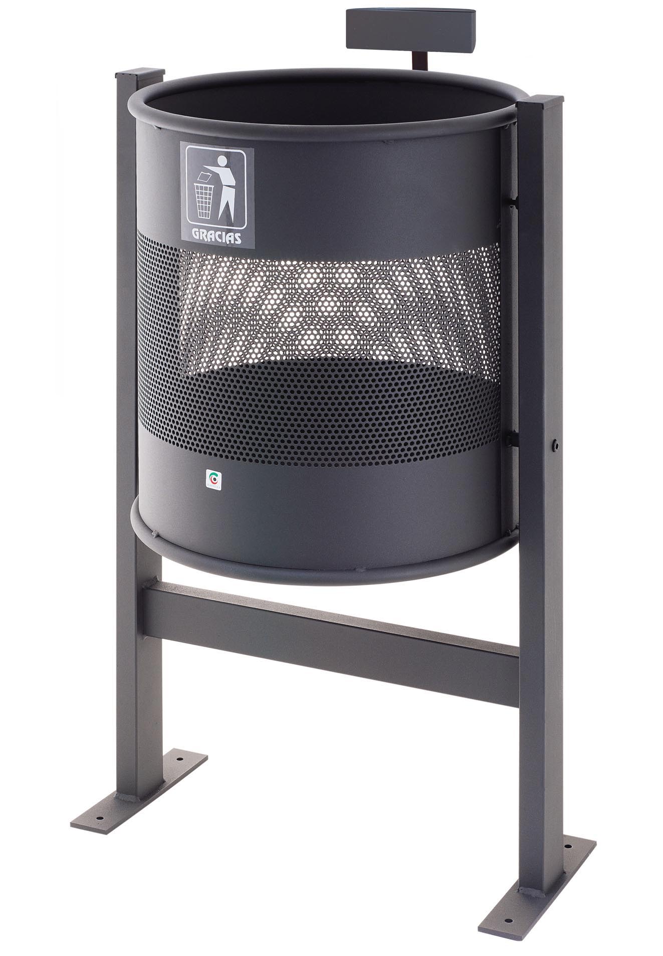 Papelera cenicero metálica perforada con bastidor para fijar al suelo P-64C