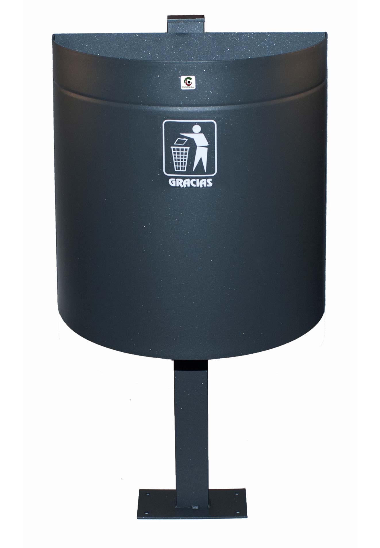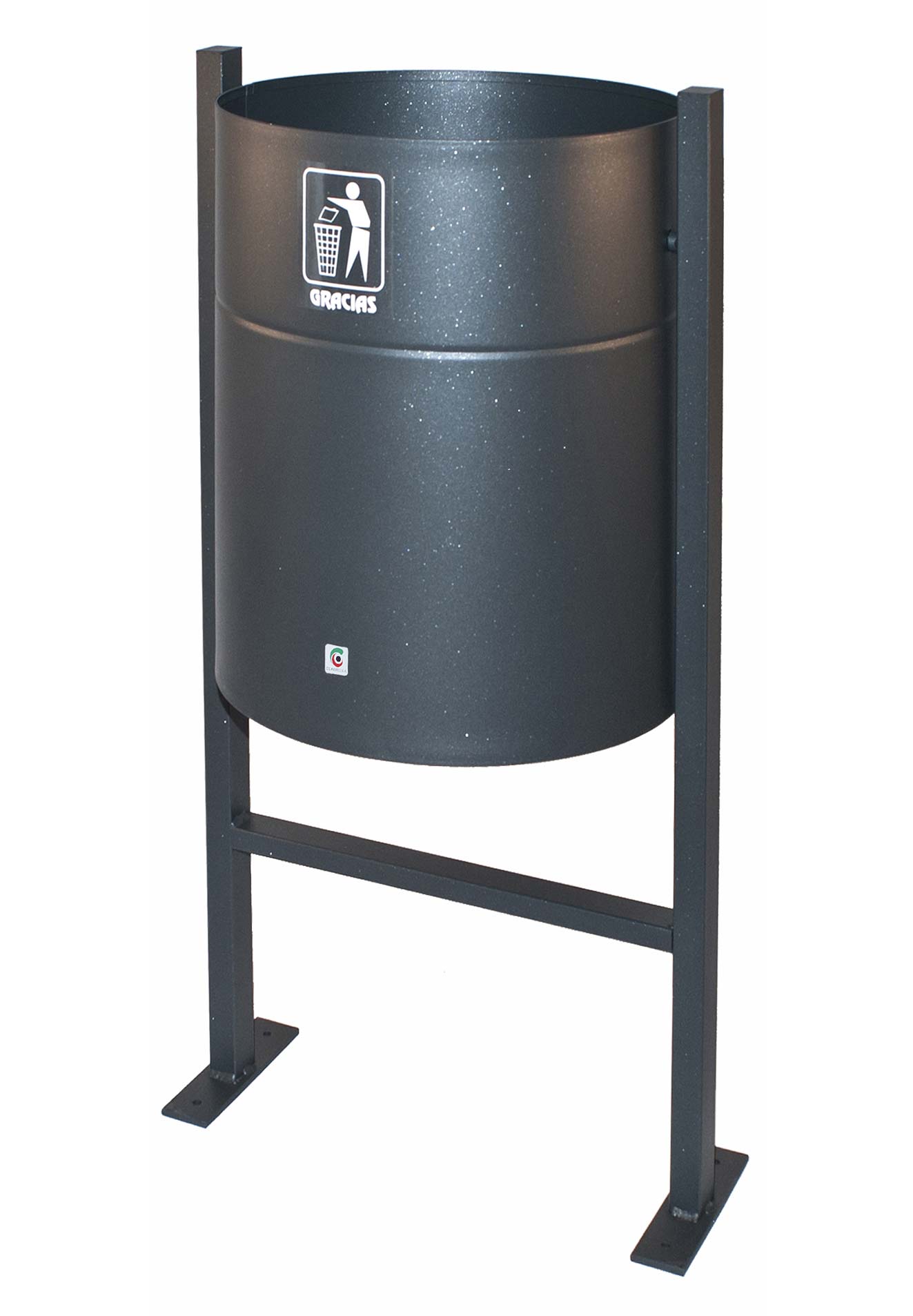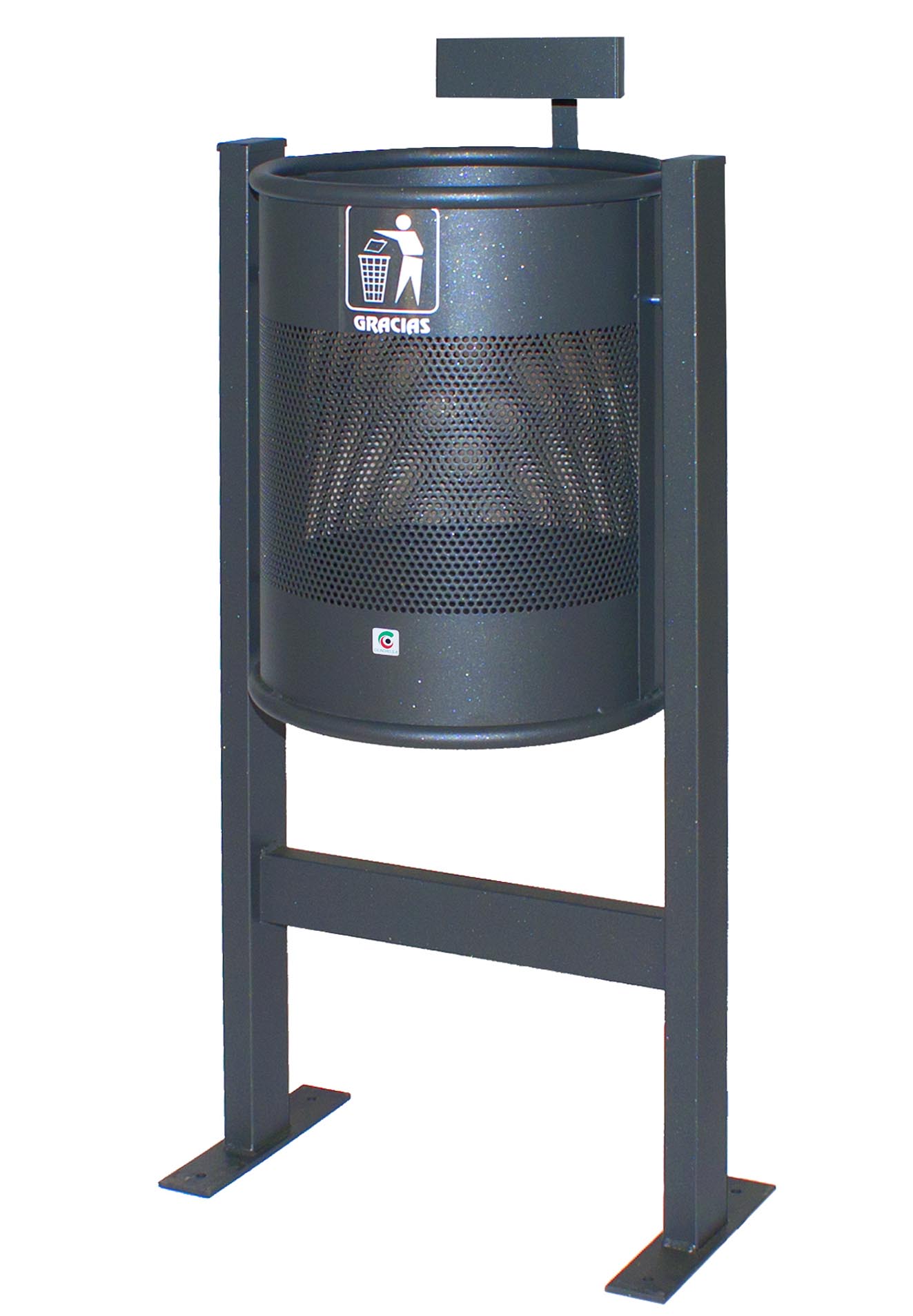 Papelera metálica perforada con bastidor para fijar al suelo P-61