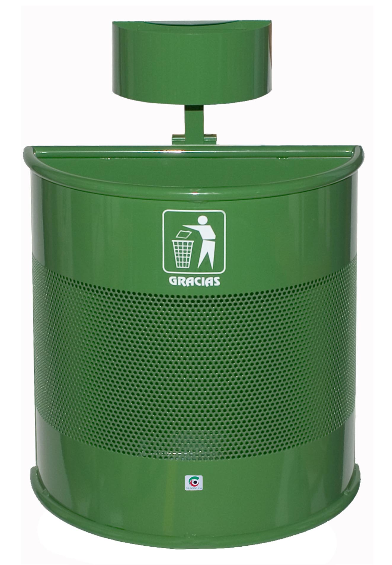 Papelera metálica perforada con soporte para fijar a la pared P-63