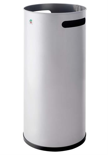 Paragüero metálico perforado pintado. Aros cromados. Recogeaguas en el interior.