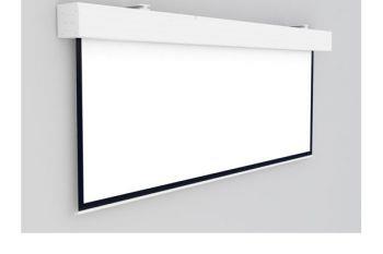 Pantalla de gran formato eléctrica para pared o techo. La barra inferior se cierra ajustando perfectamente para una instalación discreta . Sistema Easy Install para una fácil instalación. Dispone de un sistema de conexión a la corriente y accesorios muy rápido y sencillo. Incluye un mando manual de subida y bajada