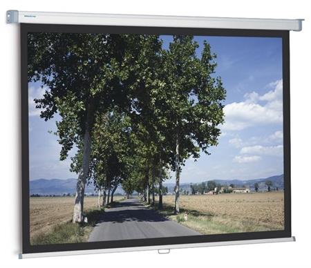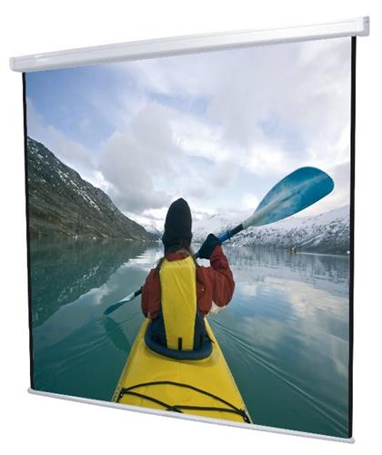 Pantalla mural de 180 x 180 cm. con mecanismo de despliegue por muelle con la carcasa más compacta.