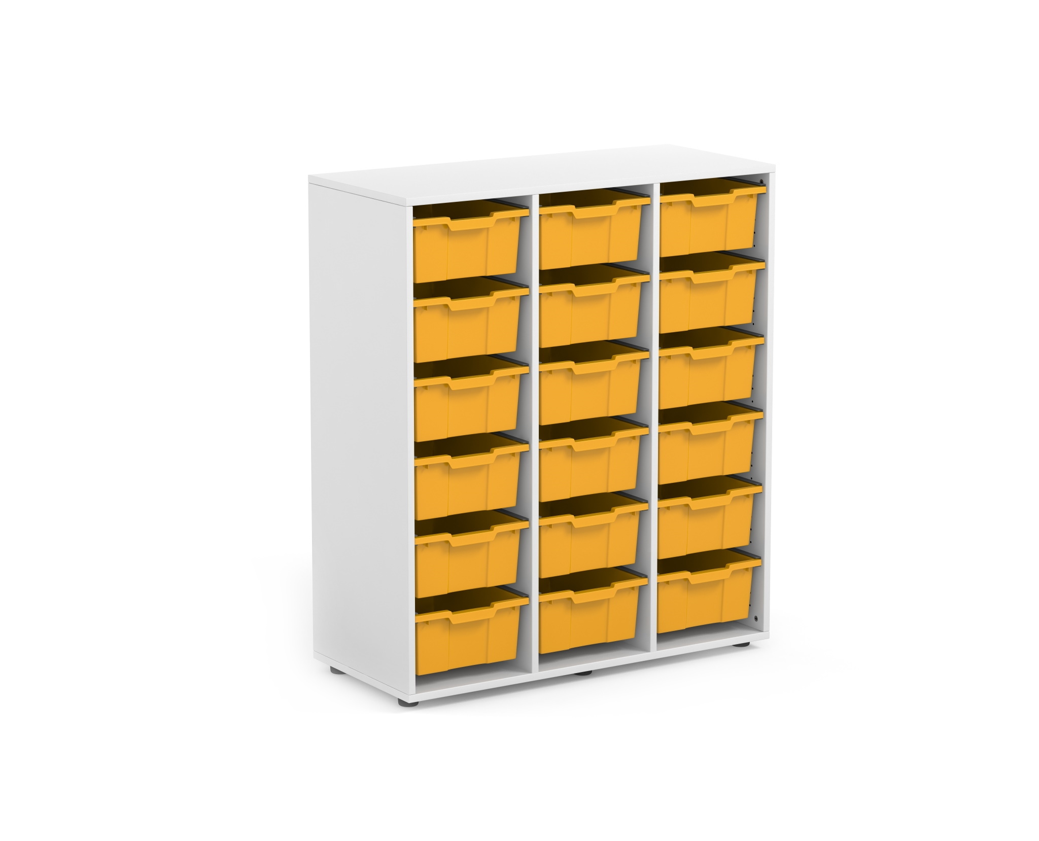 Armario escolar abierto y curvado con dos espacios y ruedas industriales. Armario que permite crear nuevos entornos y distintas áreas educativas. Ideal para equipar clases de aprendizaje cooperativo.