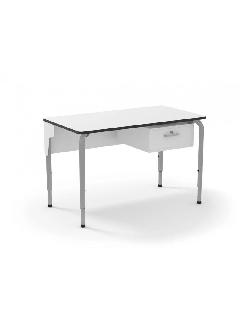 Mesa escolar RECTANGLE individual de 120 x 80 cm. Está fabricada con tablero de MDF de 20 mm. con acabado PVC de 1,5mm. y cantos redondeados y cantos redondeados acabado en color blanco. Patas regulables en altura. Estructura tubular metálica de Ø38mm. pintada en epoxi-poliester color aluminio RAL 9006. Es una mesa ideal para equipar aulas de aprendizaje cooperativo. Además permite distintas combinaciones para trabajar en grupo o individualmente.