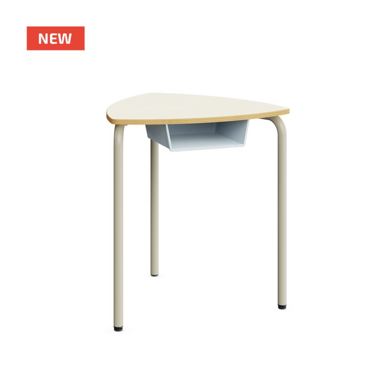 Pupitre individual con estructura metálica y acabado en madera de arce. Mesa escolar polivalente regulable en altura, ideal para primaria o secundaria.