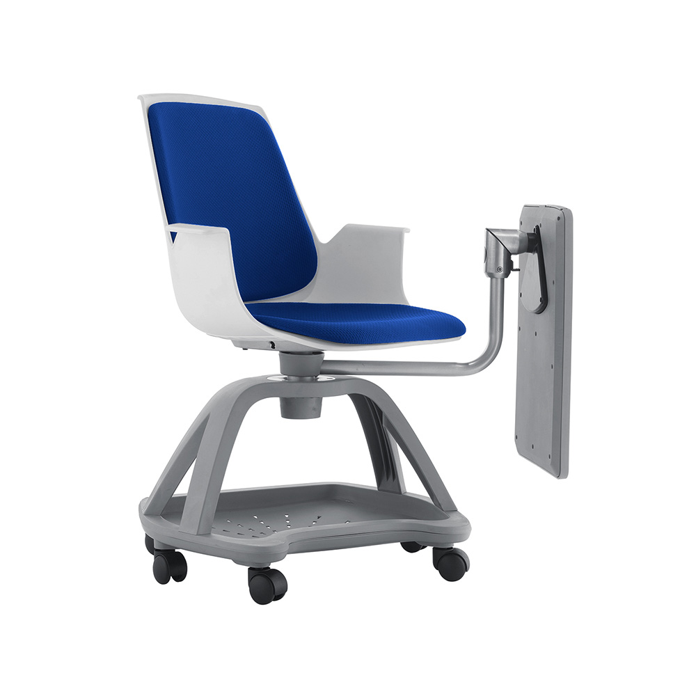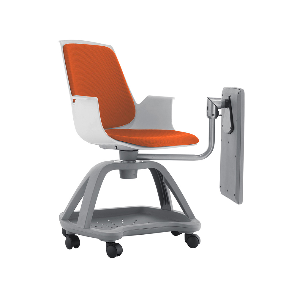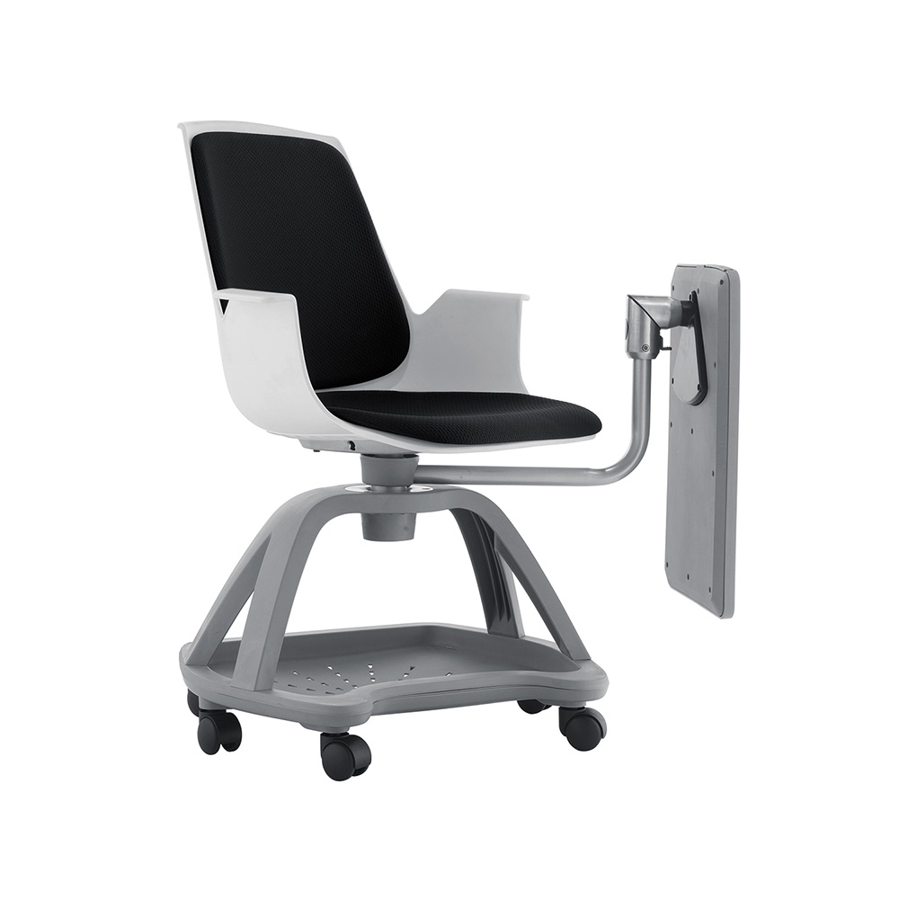 Silla colaborativa con base y cuerpo central en polímero técnico flexible con asiento y respaldo tapizado. Pala de trabajo de grandes dimensiones que permite ordenadores portátiles, ajustable a derecha e izquierda sin necesidad de desmontaje gracias a su sistema de rotación 360º. Su diseño permite un acceso fácil y gracias a sus brazos incorporados se consigue una máxima comodidad. La base permite almacenar todo tipo de objetos y sus ruedas facilitan el desplazamiento sin esfuerzo entre diferentes áreas.