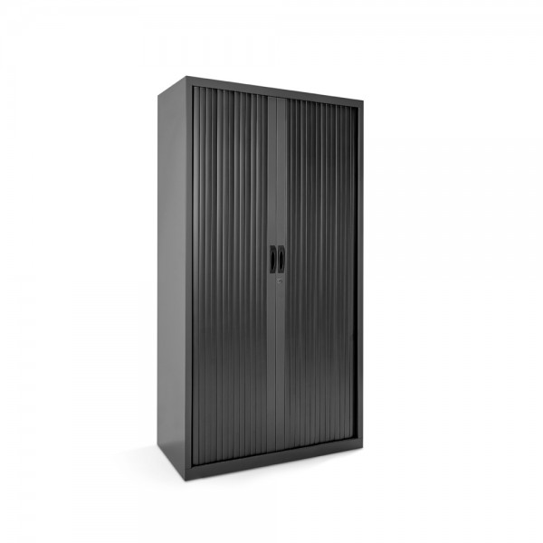 Los armarios incorporan niveladores realizados en plancha de acero. Puertas de persiana con cerradura realizadas en polímero técnico y baldas metálicas regulables en altura incluidas (admiten archivar con carpetas colgantes tamaño DIN A4). Pintados en epoxy, color según modelo. Se entregan montados de serie.
