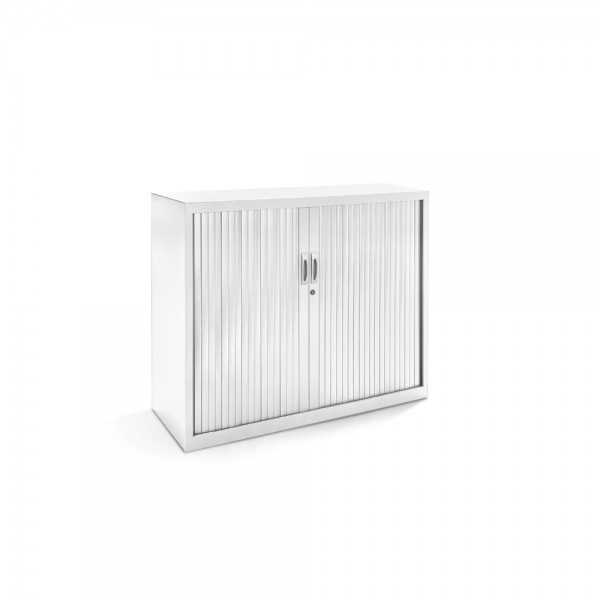 Los armarios incorporan niveladores realizados en plancha de acero. Puertas de persiana con cerradura realizadas en polímero técnico y baldas metálicas regulables en altura incluidas (admiten archivar con carpetas colgantes tamaño DIN A4). Pintados en epoxy, color según modelo. Se entregan montados de serie.