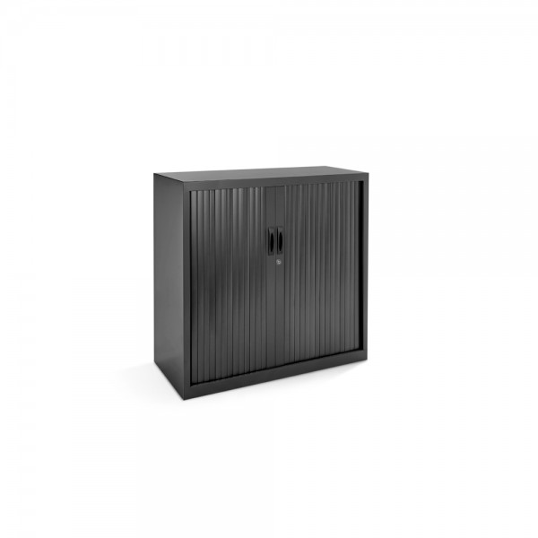 Los armarios incorporan niveladores realizados en plancha de acero. Puertas de persiana con cerradura realizadas en polímero técnico y baldas metálicas regulables en altura incluidas (admiten archivar con carpetas colgantes tamaño DIN A4). Pintados en epoxy, color según modelo. Se entregan montados de serie.