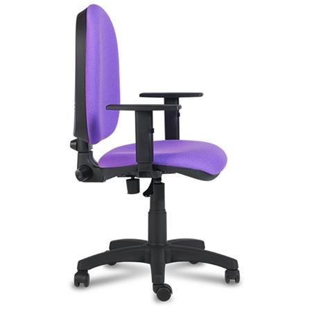 Silla operativa, giratoria, respaldo medio, con acolchado en espuma moldeada de 27kg/m3, tapizada. Regulación de altura del asiento por columna neumática. Regulación de inclinación del respaldo por mecanismo contacto permanente, con regulación de altura del respaldo. Sin brazos, con opción de brazo fijo en poliamida color negro. Base de poliamida negra. Ruedas de rodadura dura. Altura total: 95-107 cm. Altura asiento: 47-59 cm. Ancho: 47 cm. Profundidad: 58 cm.