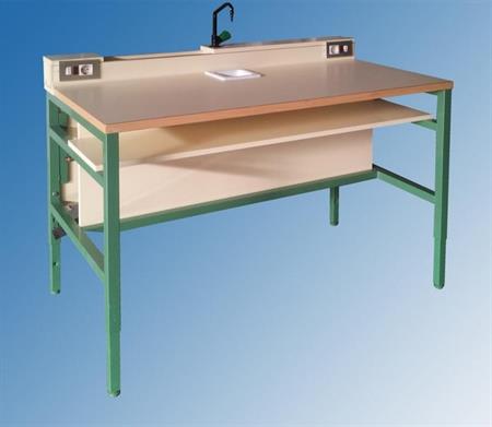 Estructura:Piés en tubo de 40 mm, de diametro y 1’5 mm, de espesor de pared, bastidor superior en tubo de 35 x 35 x 1’5 mm, y bastidor para el entrepaño en tubo de 30x30x1’5 mm. Niveladores en las dos patas sin posibilidad de extracción, soldada por hilo continuo y pintada en epoxi. Equipo eléctrico.Diferencial y magnetotérmico para la entrada de corriente, base de enchufe Schuko para el servicio a mesas contiguas. Servicio en la mesa de dos bases de enchufe Schuko, con interruptor y piloto para cada una de ellas. Linea bajo tubo por la parte inferior de la tapa.