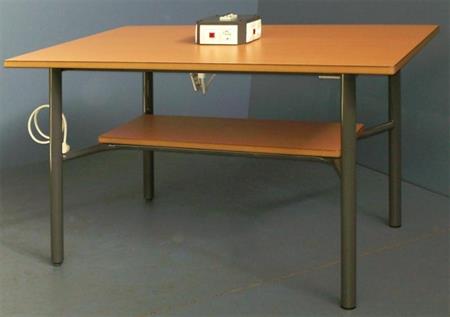 Mesa trabajos teóricos de 1500x900x760 mm. DIMENSIONES: 1500x900x760 mm. COLORES: Estructura gris Tapa haya