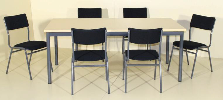 Estructura metálica Verde con perfil de acero en tubo de 22 x 1'5 mm. Sistema de unión del asiento con la armadura mediante 2 pletinas de 20 x 3 mm. Partes metálicas en epoxi asiento y respaldo de formas anatómicas en madera de haya, plancha de espuma de polietileno y posterior tapizado en tejido color negro.