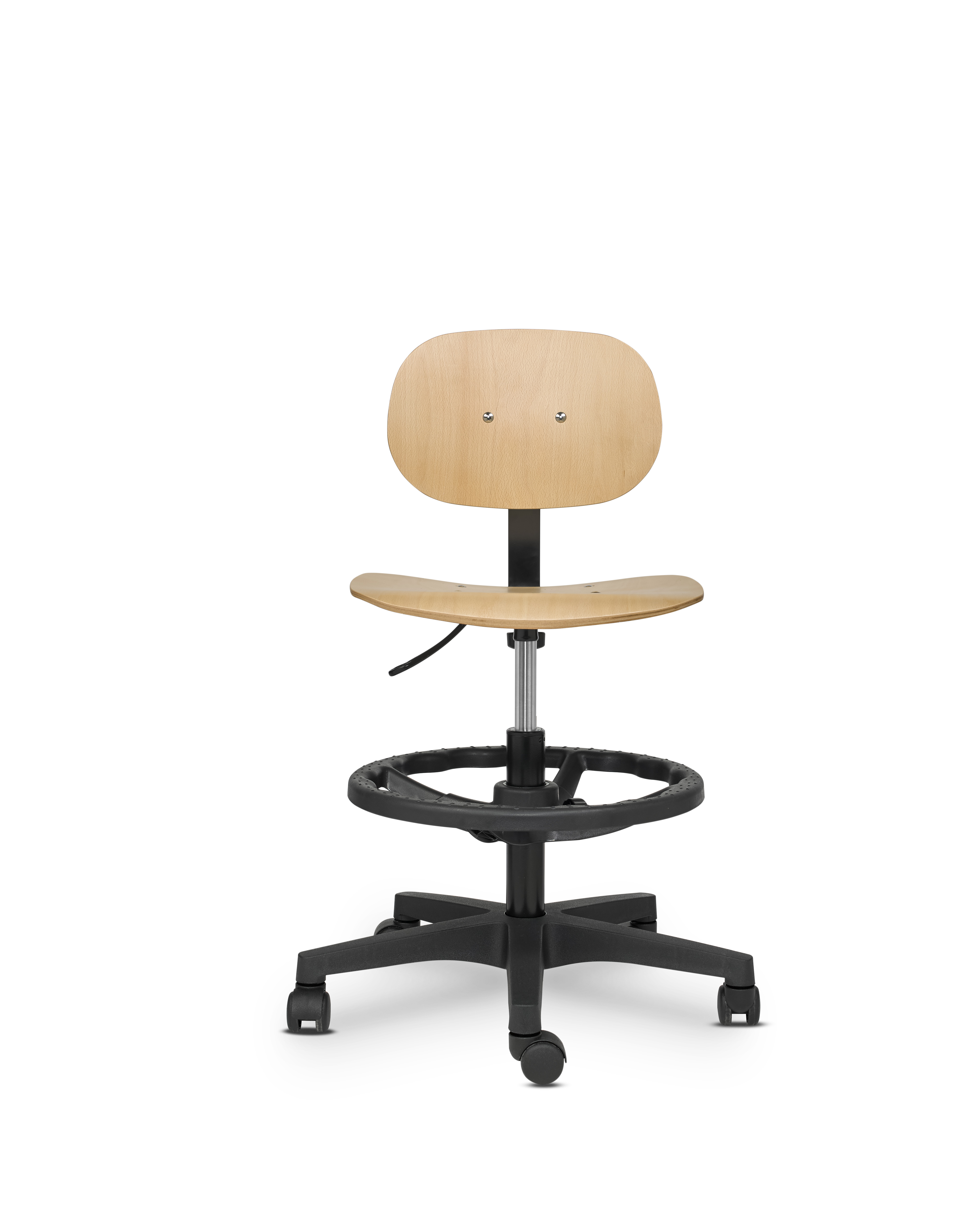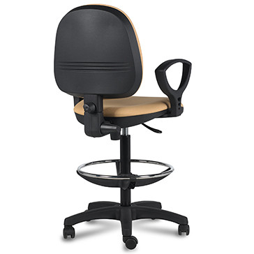 Taburete formado por un pie de 5 puntas, fabricado en tubo de 22 mm de diámetro. Caña Central fabricada en tubo de 50 mm de diámetro. Husillo roscado de 25 mm, de diametro. Placa roscada y soldada al husillo de 4 mm de espesor, con nervaduras de refuerzo. Aro posapies en acero inoxidable de 18 mm de diámetro, remachada a los pies. Asiento fabricado en polipropileno marrón, atornillado a la placa nervada. Pintada mediante recubrimiento de polvo epoxi. VERDE