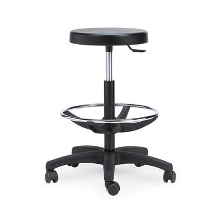 Taburete de altura regulable con respaldo. Asiento y respaldo fabricados en contrachapado. El husillo para la elevación de 25,4 mm de diametro. Pies en tubo de de 22 mm, de diametro y 1’5 mm, de espesor. Aro posapies cromado. Conteras de apoyo al suelo de p.v.c. De dos durezas. Fijación del aro posapies mediante remaches tubulares de aluminio. Pintado mediante recubrimiento de polvo epoxy. Base 422 mm, redondo. Altura maxima del asiento: 600. Altura minima del asiento: 450. Asiento 300 mm de diámetro. VERDE