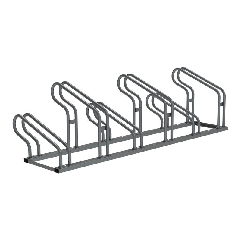 8 bicicletas a cada lado. Acero galvanizado y paneles laterales en color gris PROCITY® con señalización incluída. Ficha técnica: Fijación sobre bases con agujeros de Ø 13 mm. Longitud: 2524 mm. Tornillería no suministrada. Peso : 46 Kg