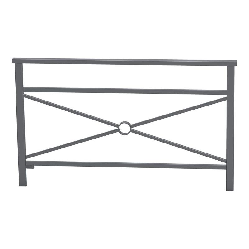 Longitud: 1572 mm. Altura visible: 1000 mm. Postes: tubos de acero ø 76 mm. Acabado: acero pintado sobre zinc según nuestra gama de colores. Fijación: sellamiento directo (placas opcionales). Puede hacerse extraíble gracias al kit de extracción Serrubloc®.
