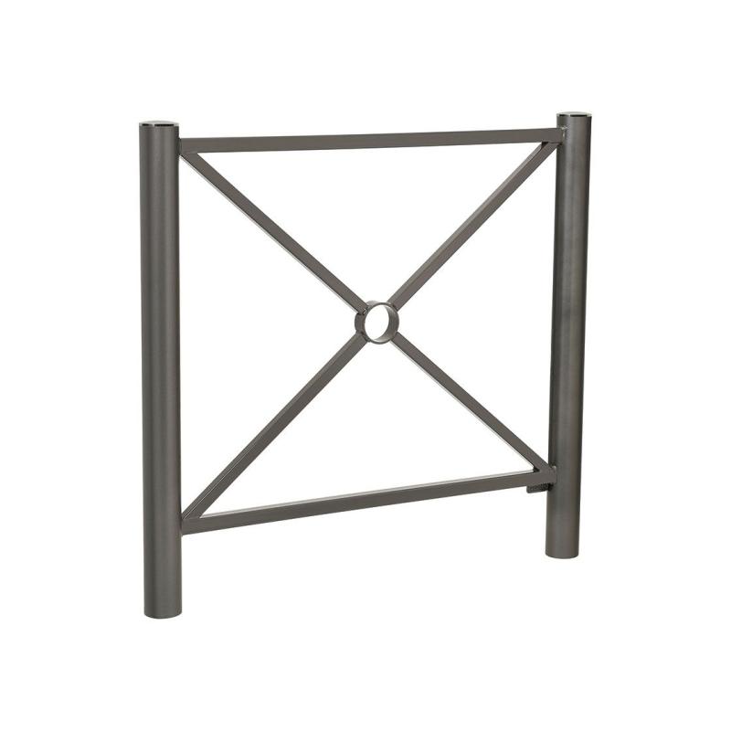 Enrejado: mallas cuadradas de alambre de ø 5 mm. Altura visible: 1100 mm. Distancia al suelo: 150 mm. Postes: tubos de acero 40 x 40 mm. Acabado: acero pintado sobre zinc según nuestra gama de colores. Fijación: sellamiento directo (pletinas opcionales). Puede hacerse extraíble gracias al kit de extracción Serrubloc®