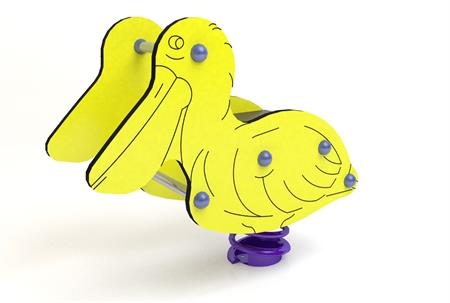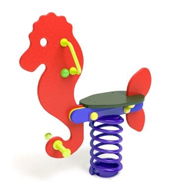 Balancín de muelle con figura de caballito de mar. Garantiza una seguridad completa al niño gracias al muelle anti-pinzamiento. Debido al diseño aporta una gran estabilidad durante la acción a la vez que permite el balanceo en todas las direcciones.