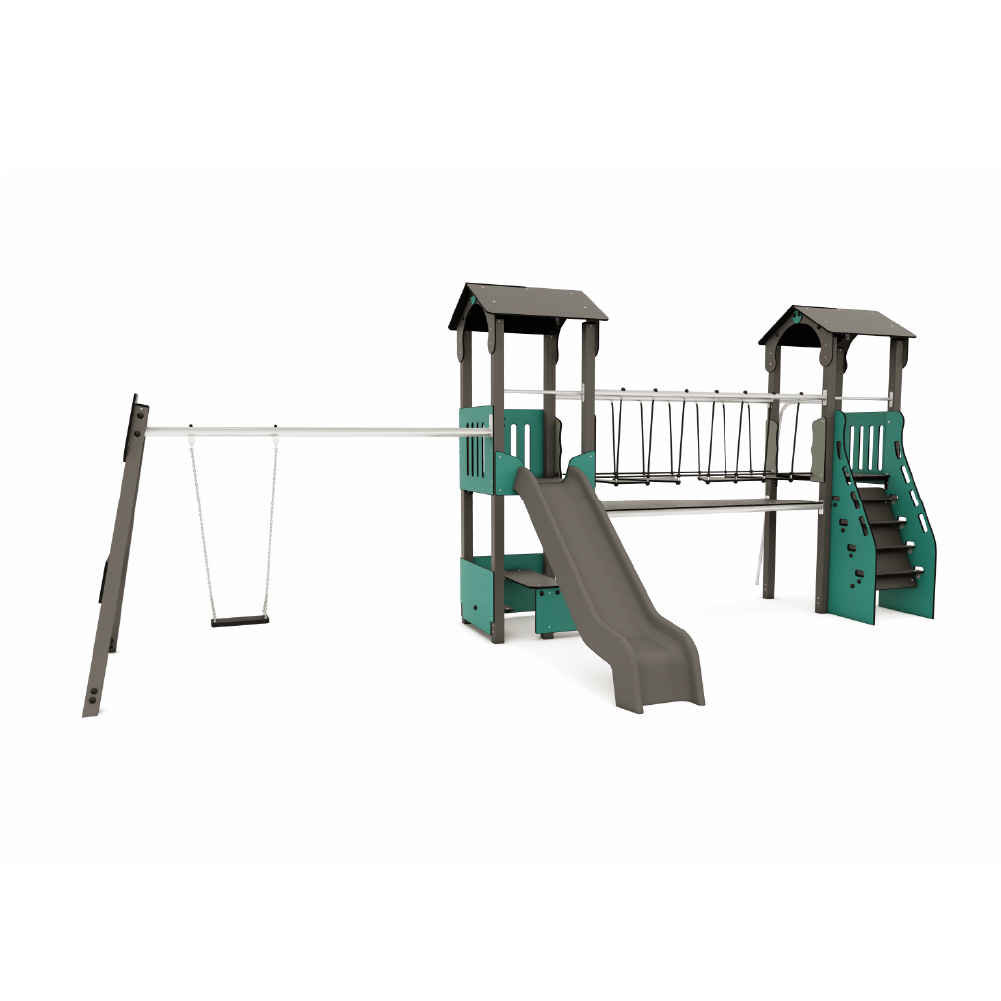 El juego de muelle ayuda a desarrollar el equilibrio y la fuerza base y así a alcanzar el control de su propio cuerpo, además estimula la imaginación de los niños.