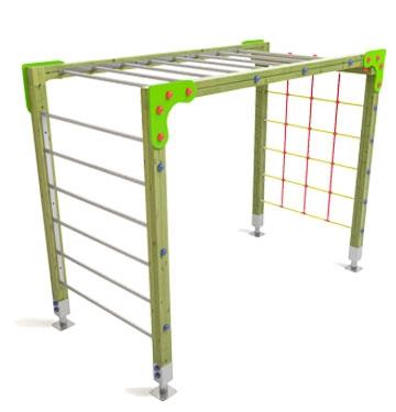 MATERIALES: Estructura: Madera. Red: Polipropileno con alma de acero trenzado. Plataformas: Contrachapado Fenólico Antideslizante 15-18 mm. Paneles: Polietileno 13-19 mm.