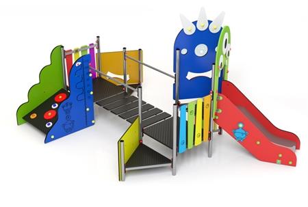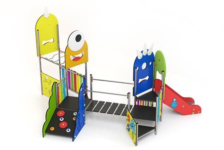 Tobogán para los más pequeños con escenografía de un monstruo gigante muy simpático que estimula la imaginación de los niños, mientras pueden experimentar en él la sensación de deslizarse.