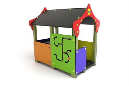 Casita que nos recuerda una pagoda china. Es un juego muy completo ya que posee en su interior diferentes elementos como banquitos, mesa de juego, mostrador, juego de laberinto, etc. La estructura fabricada en madera de pino de Suecia está tratada con autoclave. Los paneles de cerramiento están fabricados con polietileno de alta densidad.