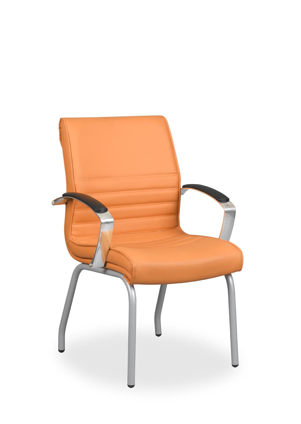 Horus 3: Respaldo medio, brazos fijos de poliuretano, estructura de patín, pintado negro, gris o blanco.