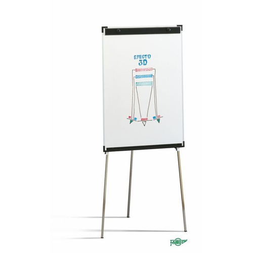 Con marco, superficie metálica, permite el trabajo con imanes, útil para colocar blocs de papel y para escribir con rotuladores especiales para pizarra blanca. Regulable en altura mediante trípode telescópico hasta 180 cm.