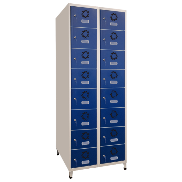 Taquilla soldada monoblok fabricada en chapa de acero laminado en frío. Pintado con Epoxi-poliéster en polvo, acabado microtexturado. Color estándar: Cuerpo gris RAL 7035 y puerta azul RAL 5010.