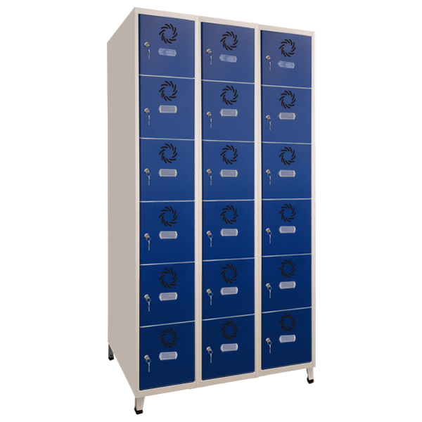 TAQUILLA MONOBLOK SM-30/1 de 3 puertas de 1.900 Alto x 300 Ancho x 500 Fondo. Taquilla soldada monoblok fabricada en chapa de acero laminado en frío. Pintado con Epoxi-poliéster en polvo, acabado microtexturado. Color estándar: Cuerpo gris RAL 7035 y puerta azul RAL 5010. Puerta con etiquetero y rosetas de ventilación. Puerta con refuerzo longitudinal. Cerradura cromada de cilindro con dos llaves. (opcional: cerradura de candado, cerradura amaestrada, Cerradura de combinación, etcc.. "CONSULTAR"). Patas soldadas con conteras de polietileno. Ancho de puerta 30 cm. Disponemos de otros anchos: 25-35-40-45 cm. (consultar). SE SIRVEN MONTADAS. Dimensiones 1.900 Alto x 300 Ancho x 500 Fondo.