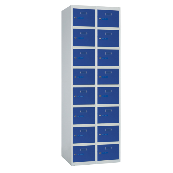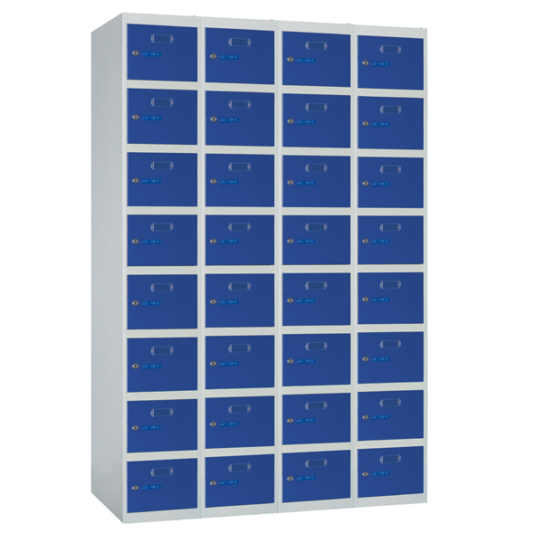 Sencillo montaje con tornillos. Ampliable a voluntad. Sistema de inicial y extensiones. Laterales, tapes-travesaño y puerta fabricados en chapa de acero laminado en frío. Pintado con Epoxi-poliéster en polvo, acabado microtexturado. Color estándar: Cuerpo gris RAL 7035 y puerta azul RAL 5010. Fondo y bandeja interior en acero galvanizado no pintado. Puertas con doble plegado perimetral Bordes sin aristas cortantes y bisagras ocultas. Puerta con etiquetero y rosetas de ventilación. Cerraduras cromadas de cilindro con dos llaves. Opcional: cerradura de candado, cerradura amaestrada, Cerradura de combinación, etcc.. "CONSULTAR". Ancho de puerta 30 cm. Otros anchos: 25-40 cm. (consultar). Puerta con refuerzo. MONTAJE (CONSULTAR)